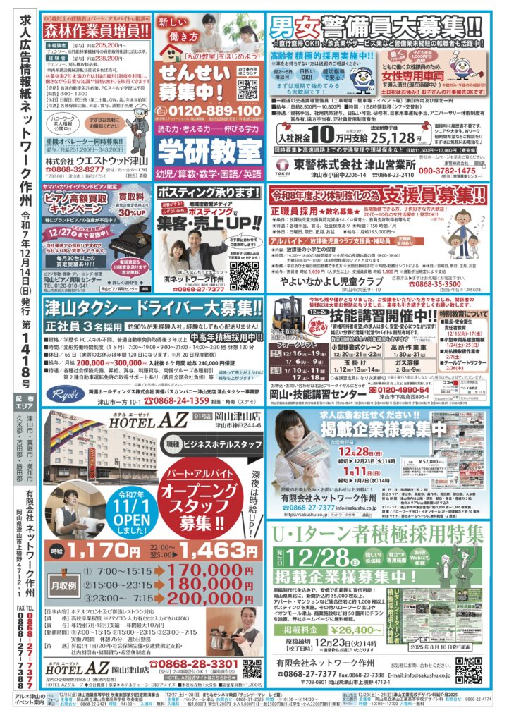 12月14日(日)・28日(日)発行 掲載企業様募集中!!