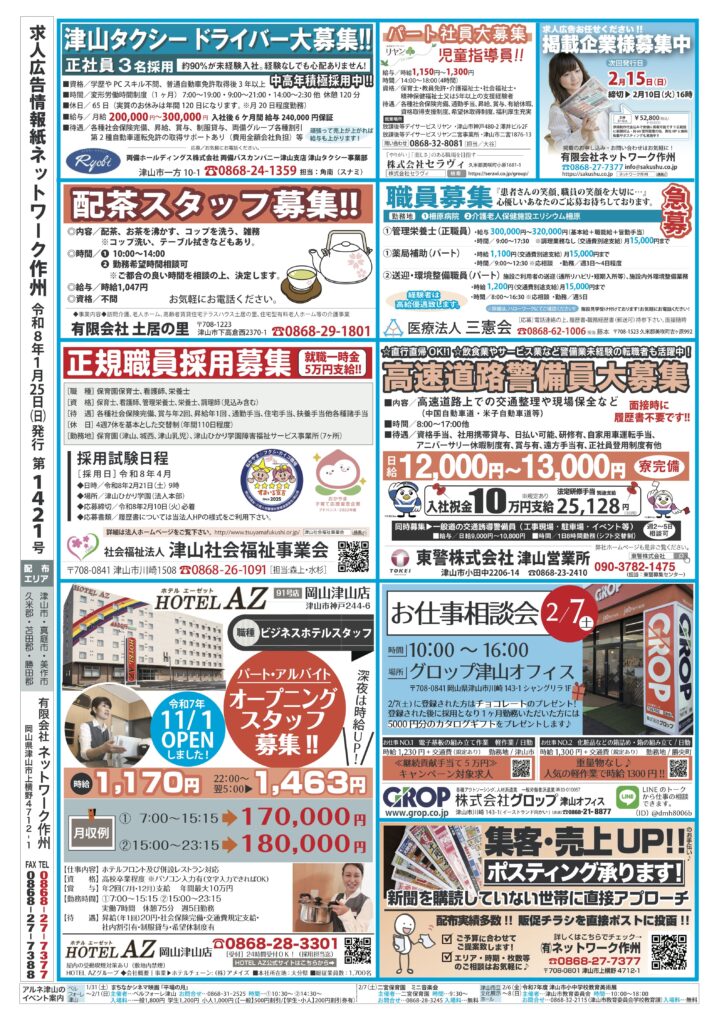 1月25日発行の紙面です。 お仕事をお探しの方、気になる・や
